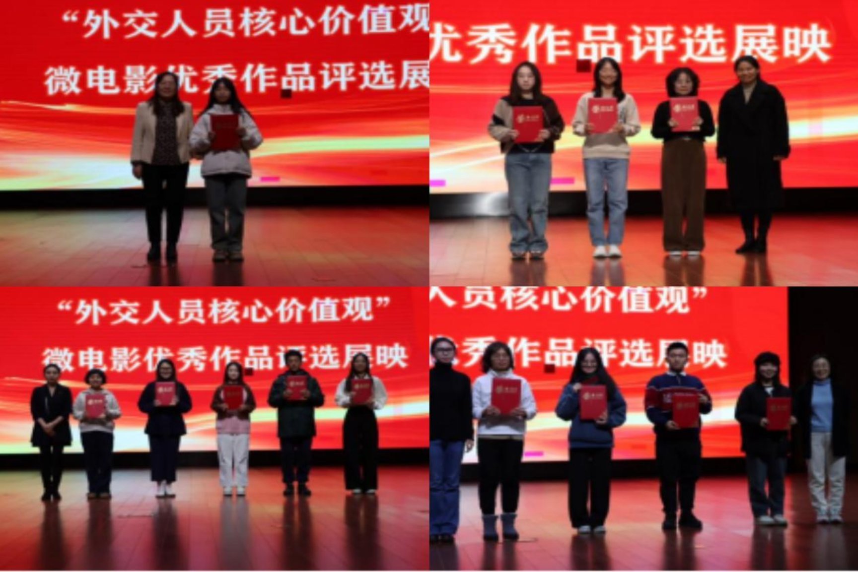 活动开展以来,经过前期学生创作展示、年级初评,15部优秀作品从45部作品中脱颖而出,并参加集体评比展播。展播于11月29日晚在外交学院沙河礼堂举行,大一新生集体观看。