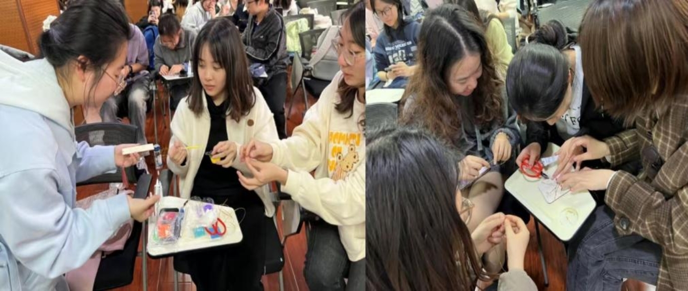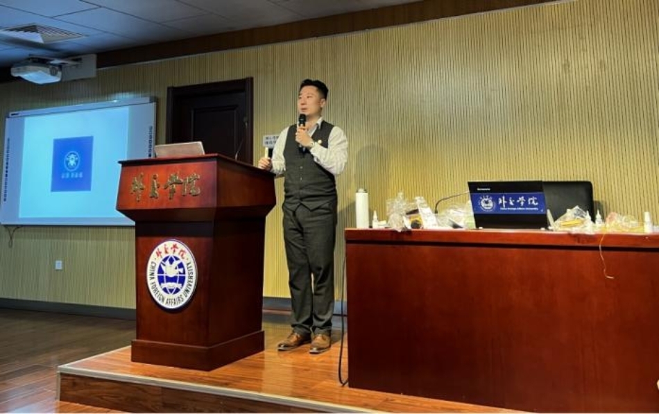 讲座分为教学环节与手工活动两部分。在教学过程中,霍旭斌先生首先从珐琅、珐琅器及其品种等基本概念入手,为同学们讲述了中国掐丝珐琅器的起源和景泰蓝名称的由来,介绍了明清两代景泰蓝发展的历史与创新工艺,并指出辛亥革命后景泰蓝制品迈向国际市场的重要影响。新中国成立后,景泰蓝艺人的文化水平和艺术修养有了很大提高,培养了一批景泰蓝工艺美术大师。此外,霍先生结合外交学院特色,特别讲述了新时代以来景泰蓝作为国礼赠送外国元首及政要的重要外交场合。